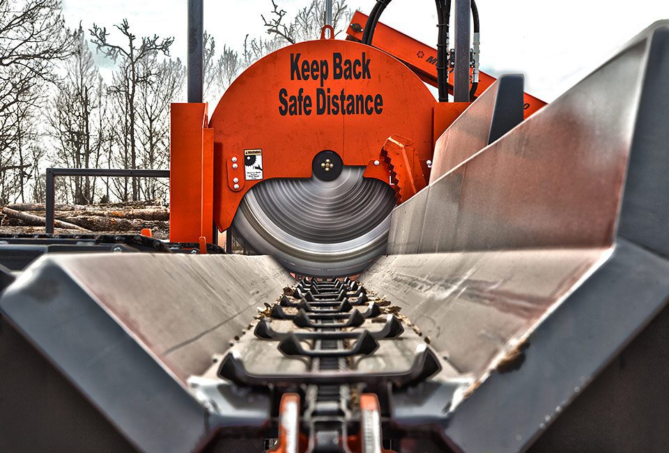 All our circular saws come standard with a hydraulic saw brake. As soon as the saw is shut off, the brake stops the spinning blade in about 10 seconds. This makes it far safer for someone to access parts of the machine that may need attention while the processor is running. Unlike the brakes on your car, the hydraulic brake puts no wear on the circular blade, preserving the life of the saw.
